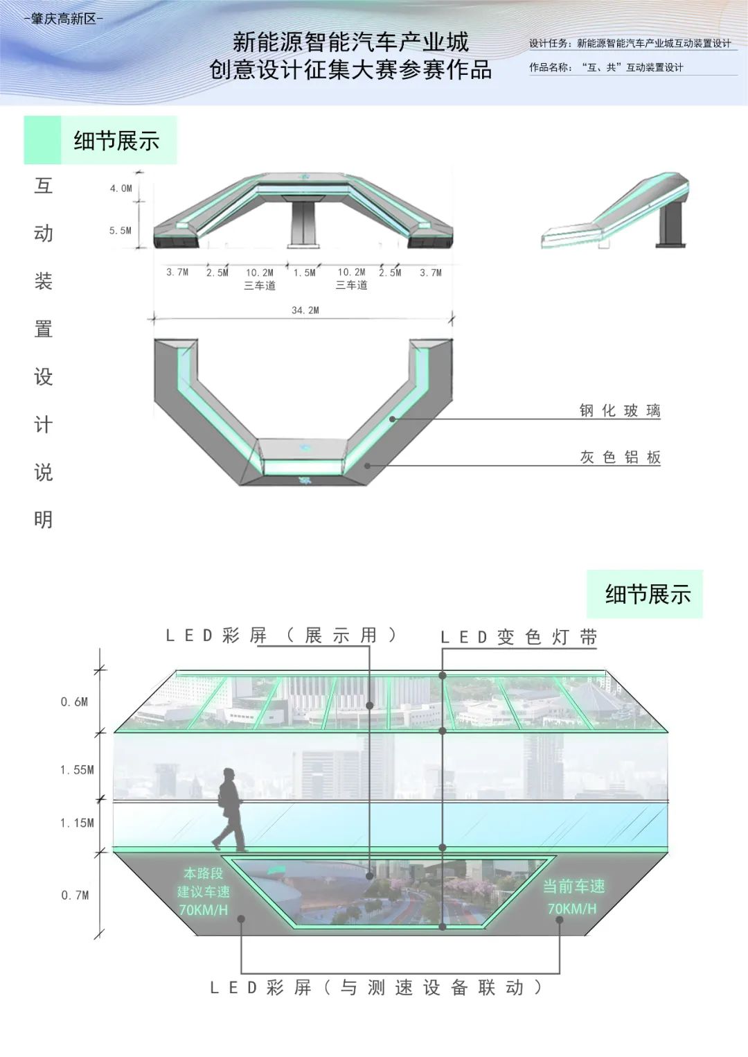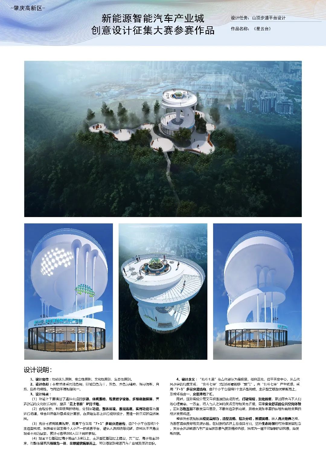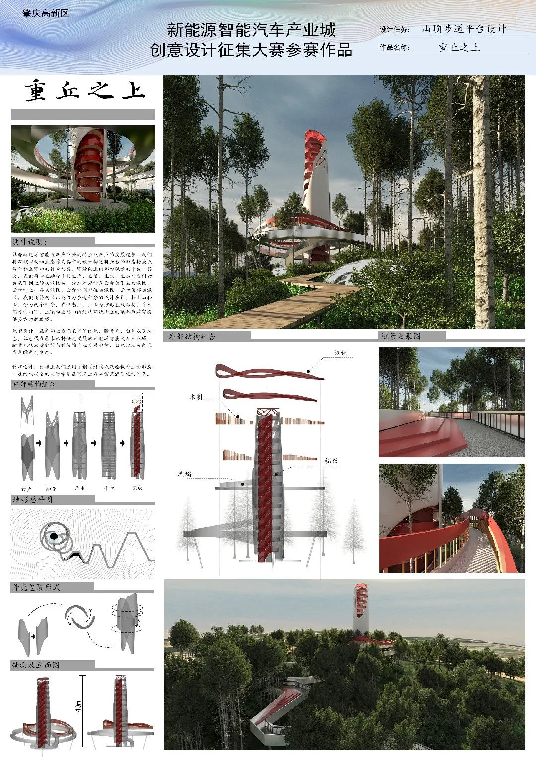 大赛从2022年7月27日至10月15日历时近三个月,在社会各界的大力支持下,得到全国高校师生、优秀设计师、设计机构、企业等积极响应,共征集创意设计作品166份,其中互动装置设计61份,山顶步道平台设计105份。最终新能源汽车产业城互动装置设计、山顶步道平台设计两个项目组共评出一等奖2个、二等奖4个、三等奖10个、优秀奖10个、入围奖20个、优秀指导教师奖3个,总奖金达21万元。优秀作品将结合高新区发展情况适时深化设计和使用。