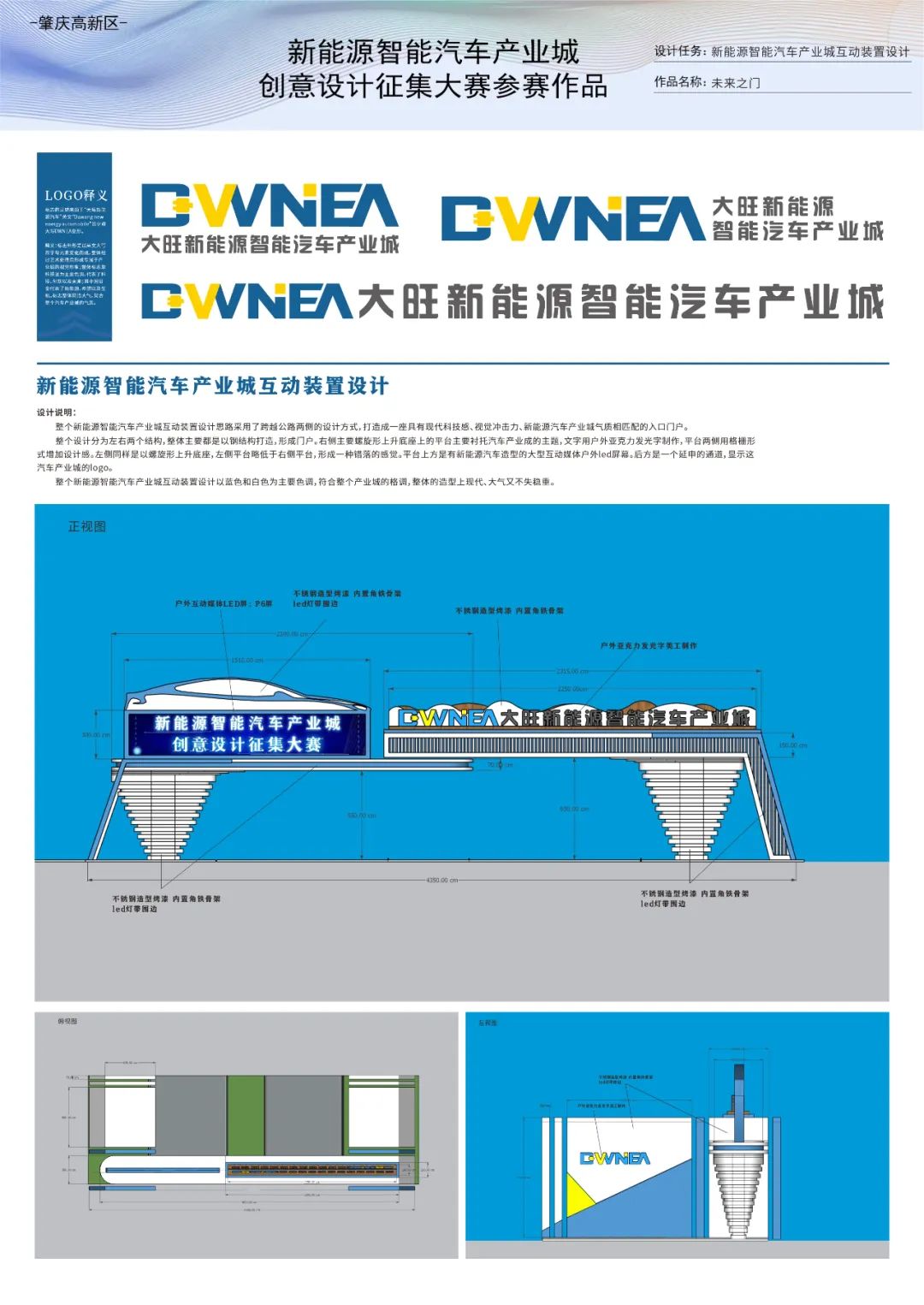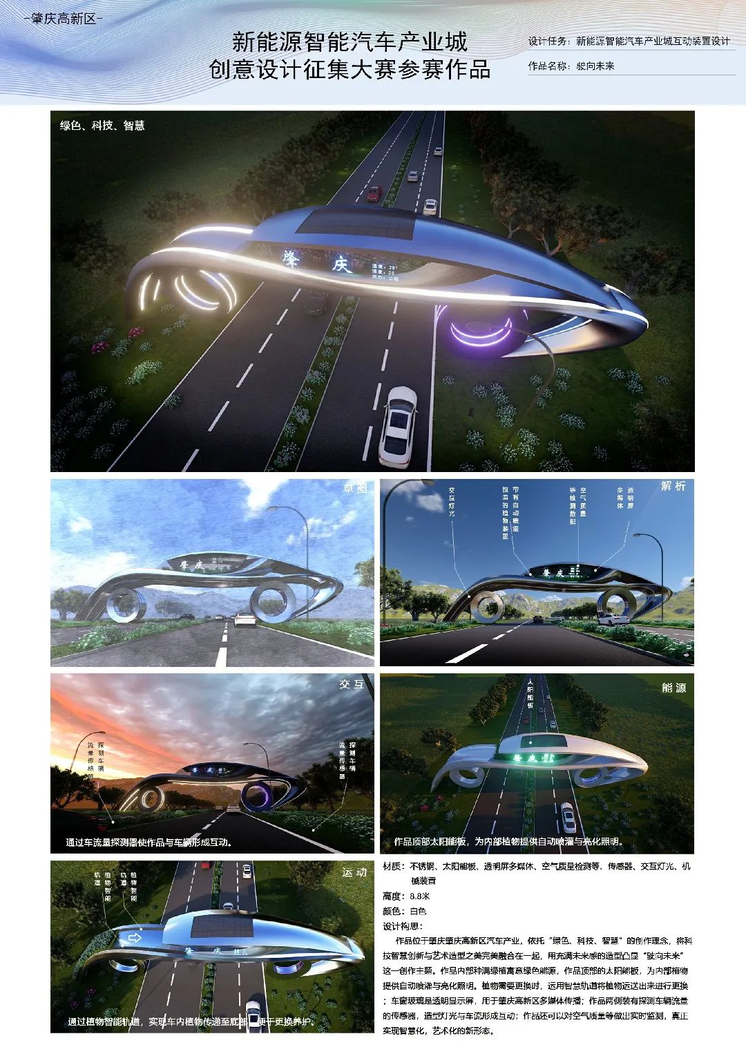 为加快推动肇庆高新区新能源智能汽车产业发展,展现新能源汽车文化魅力,肇庆高新区管委会和402永利集团联合举办大旺新能源智能汽车产业城创意设计征集大赛,大赛以“绿色、创新、科技”为主题,由肇庆高新区人居环境建设和管理局、402永利集团402永利集团承办,肇庆高新区现代服务业行业协会协办,重点面向在校老员工,国(境)内设计机构、个人或团队公开有偿征集新能源智能汽车产业城范围内两处创意设计方案。