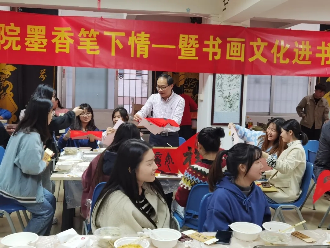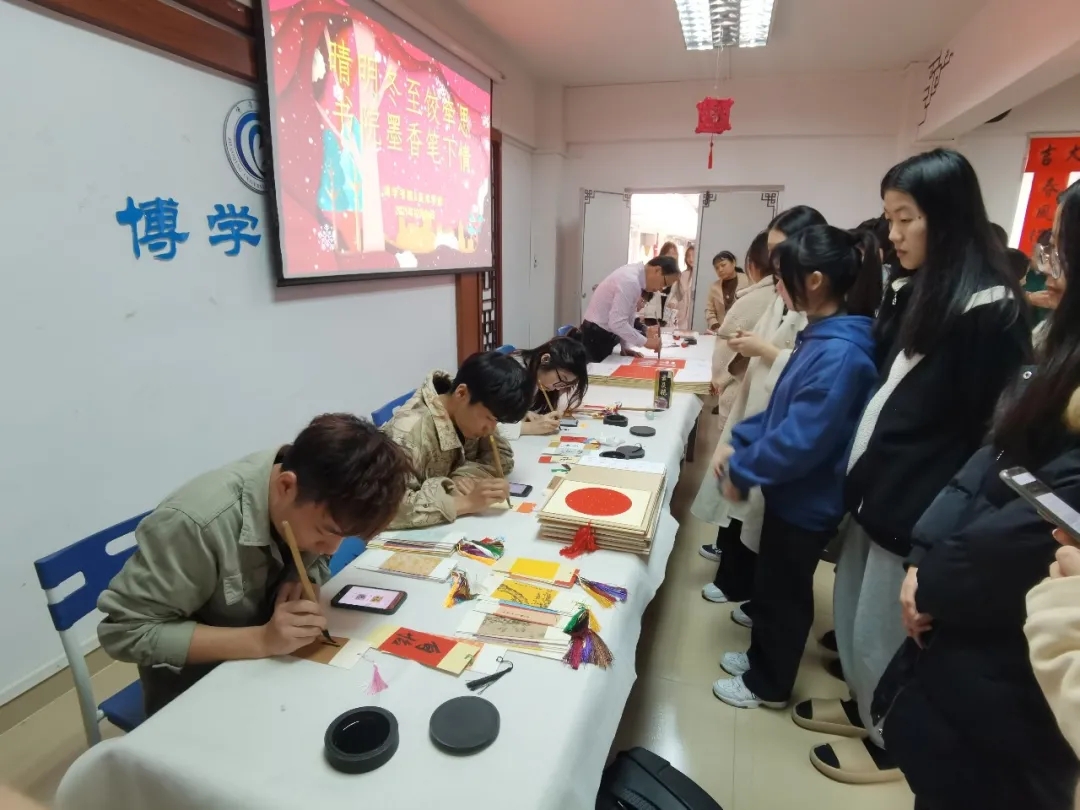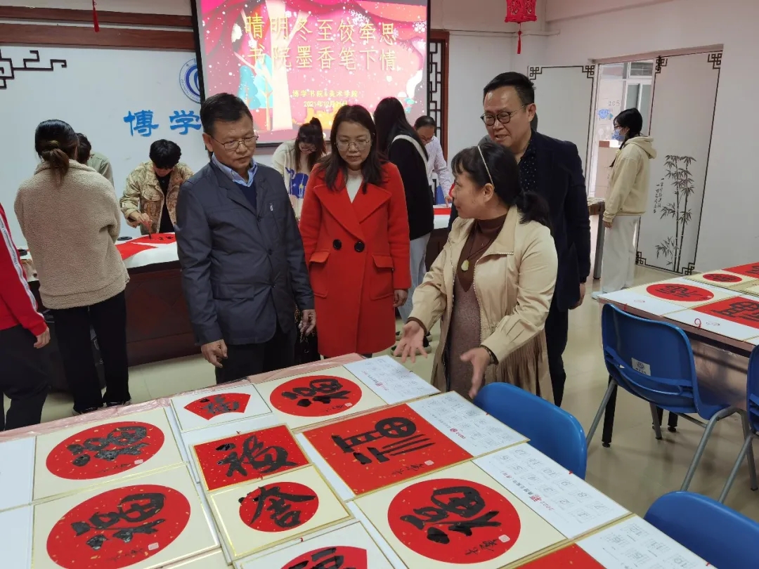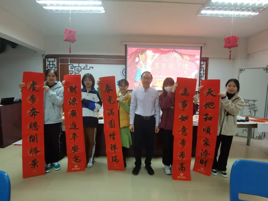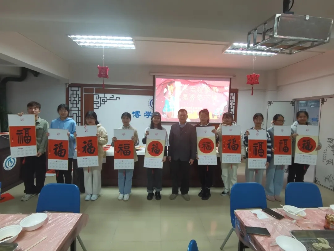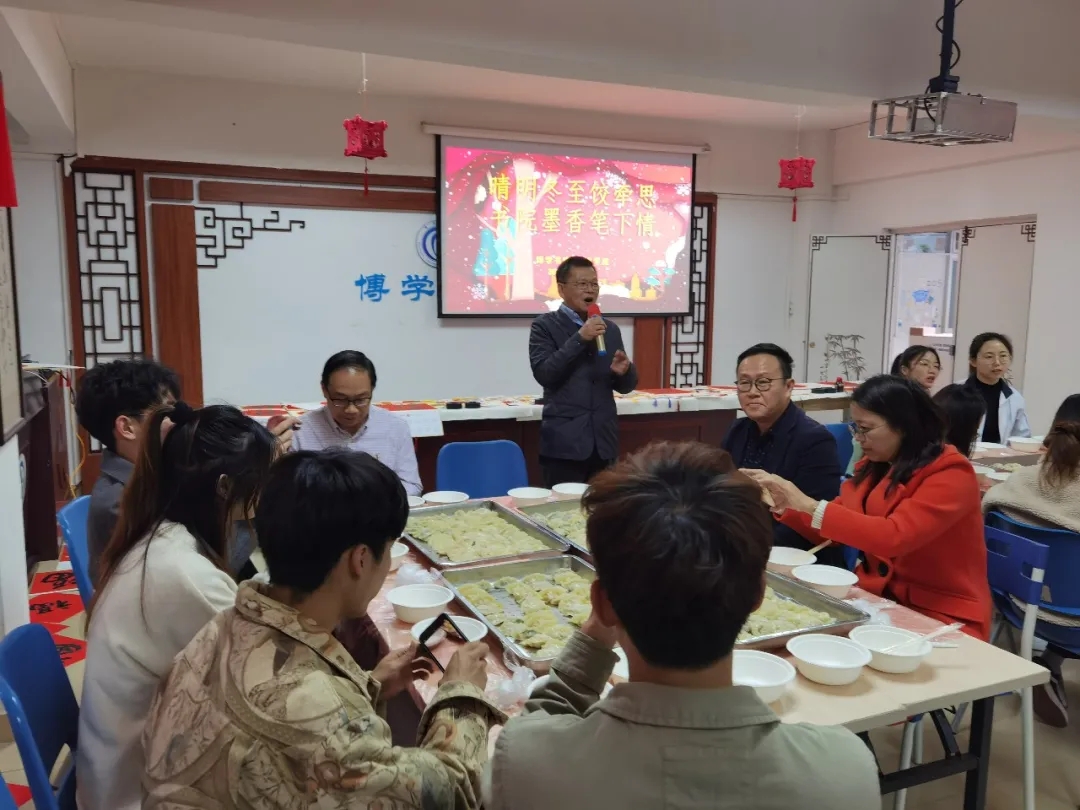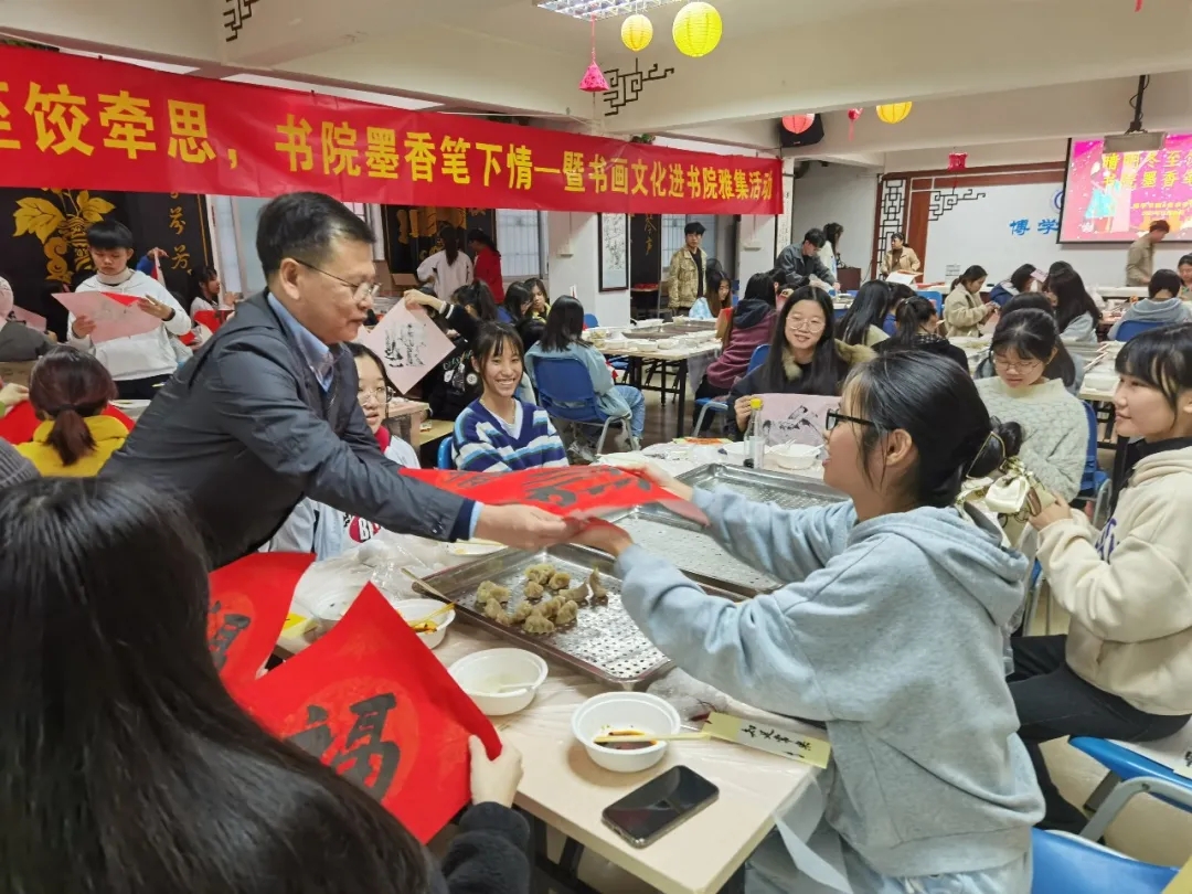 为进一步增强校园师生对中国传统节日的文化自信,营造浓厚的节日氛围,寄托对家乡和亲人的思念之情,今天下午,博学书院联合402永利集团共同举办了“晴明冬至饺牵思 书院墨香笔下情——暨书画文化进书院雅集活动”,肇庆公司党委员工工作部、员工工作处处长陈向荣,美术公司党委书记蔡卡宁,肇庆公司党委员工工作部、员工工作处副处长陈玉华、副处长罗永全,博学书院常务副经理卢秀平,辅导员冼美谊、张林杉、张宝旋与60多名来自各地的员工齐聚博学堂,一起包饺子、送福字,共叙节日情怀!