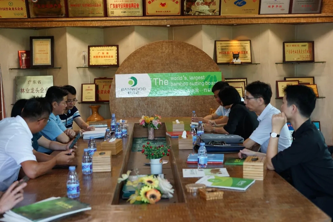 在周从祥副县长、县林业局陈丽金副局长等领导的热情接待和周密安排下,考察组一行先后到广东海鹏竹纤维新材料科技有限公司、广宁万众竹木业工艺制品有限公司、昌浩合作社、广宁信发竹艺综合厂、广宁昌隆竹业等单位参观,与企业负责人、技术人员、竹编手艺人等进行交流,深入了解广宁竹资源、竹产业、竹家具等的发展现状,并就下一阶段产学研合作方面进行初步沟通。