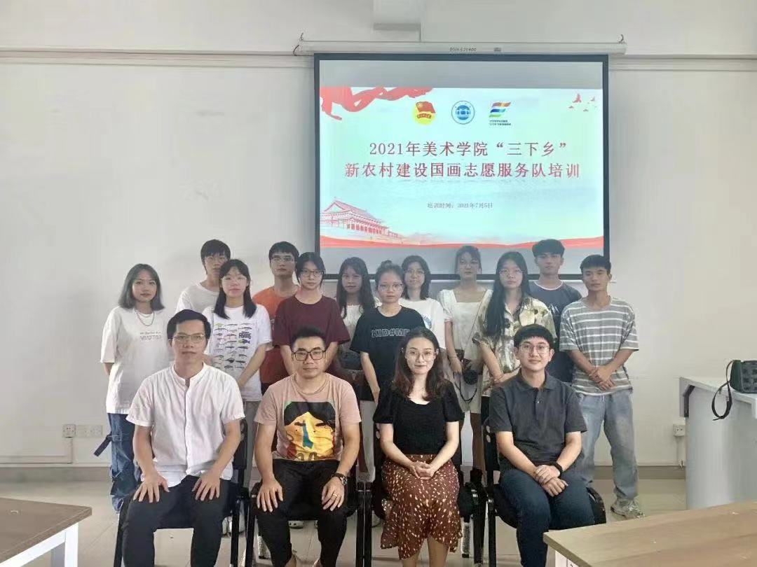 新农村建设志愿服务队的队员招募通知一发出去,美院学子便踊跃报名参与,结合志愿者的意愿、特长、兴趣等进行筛选、分组后,由各组指导老师开展了第一次的会议培训,志愿者们充分了解了这支队伍的作品题材、尺寸等要求,指导老师们也根据志愿者的实际情况制定了详细的计划,做到因材施教。