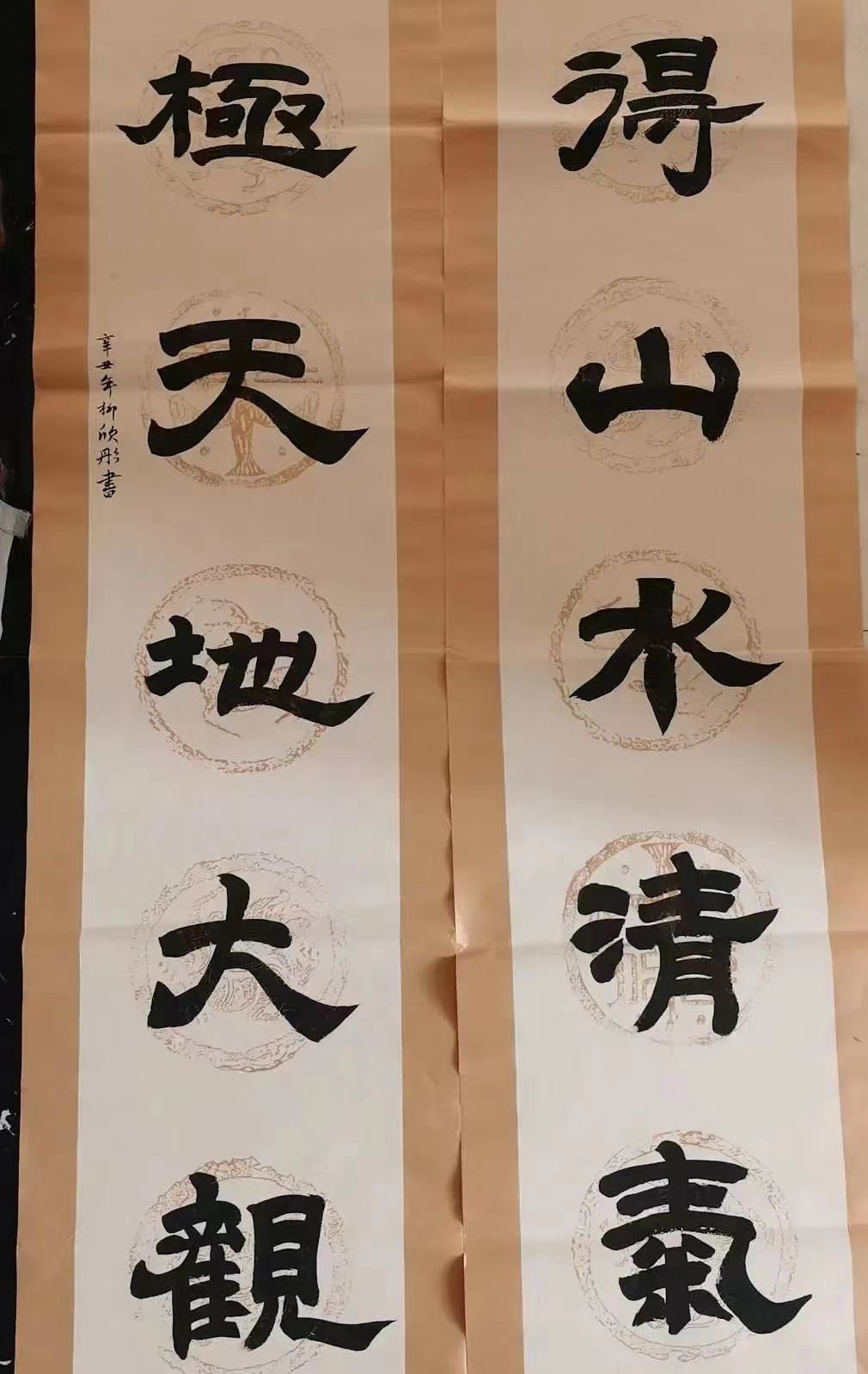 这是我第一次参与三下乡的活动,我需要在暑期完成书法作品,而这些作品将会送到农民家中去,因此创作时我需要想一些适合放在农民家中的字,想到乡村于是我想到了炊烟十里,想到了山水,写了一副斗方“炊烟十里”,一副对联“得山水清气,极天地大观”等等。参与这个活动我认为是一个锻炼自我,提高能力的机会,既可以学习到书法又可以为人民服务,奉献社会,可以用我们所学的去回馈社会,我在大一就能成为其中的一份子,我觉得十分荣幸,这个活动也丰富了我的暑假,丰富了我的人生经历。