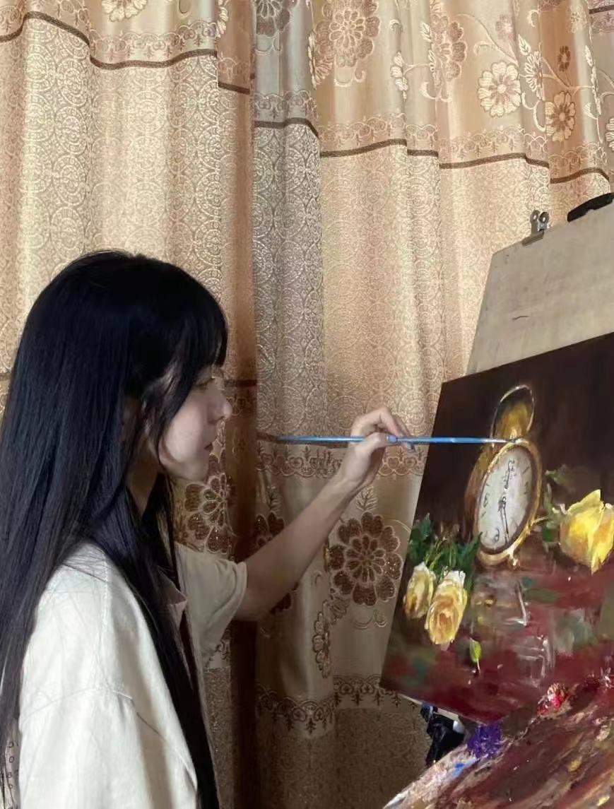 此次“三下乡”活动我们利用暑期进行党史等题材相关的油画创作,并赠予村民用于装饰家居。这不仅仅能够在家锻炼自我的绘画能力,还可以通过艺术给村民们传播党史等知识、美化他们的生活起居环境,更给我的作品富有了更有价值的意义。我希望送给村民们我的作品时他们是快乐的幸福的。期望我以后还有机会参与此类实践活动,以所学知识服务乡村文化建设,展现青年人的使命担当,并在此过程中不断提升自我,完善自我,实现个人价值。