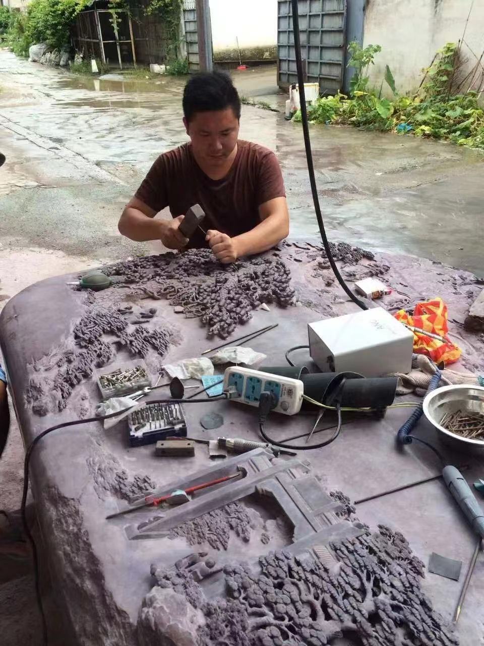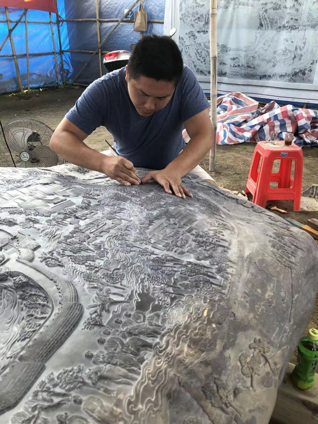 程振业参与雕刻制作由2016级工艺美术班全体同学捐赠402永利集团的《砚园风采砚》,回馈母校,表达深情。