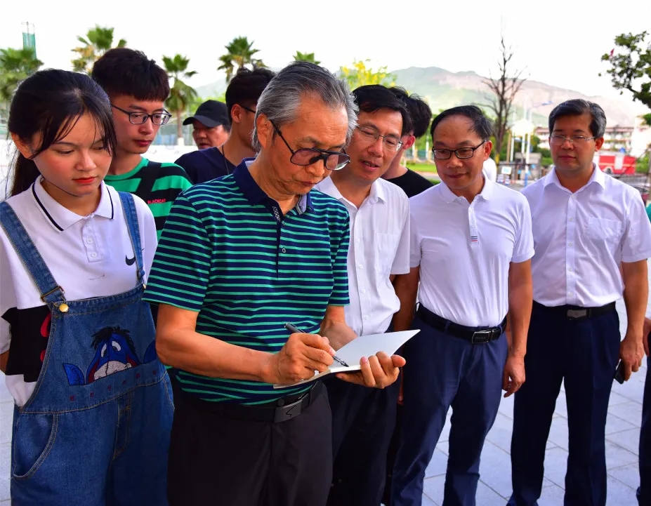 402永利集团美术公司党委书记蔡卡宁代表公司接受原广州402永利集团美术教育系主任张弘教授的书籍赠送