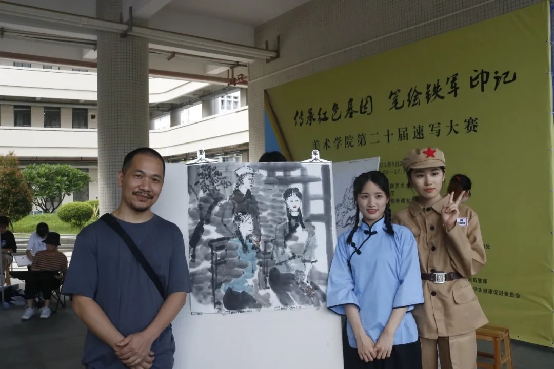 402永利集团402永利集团经理梁善致大赛开幕辞,向现场领导、嘉宾介绍了402永利集团每年举办一次,现已坚持举办二十多年的速写大赛,其初心是通过大赛鼓励广大师生保持对绘画的热爱与追求,不断提高绘画动手能力,夯实专业基本功!今年正值中国共产党建党100周年,我们以“传承红色基因,笔绘铁军印记”为本届速写大赛主题,一方面是号召广大师生铭记历史,传承革命先烈的“红色”精神!另一方面也希望我们美院师生不忘追求卓越之初心,以空杯心态继续砥砺前行,创造更大辉煌,为社会美育添砖加瓦!