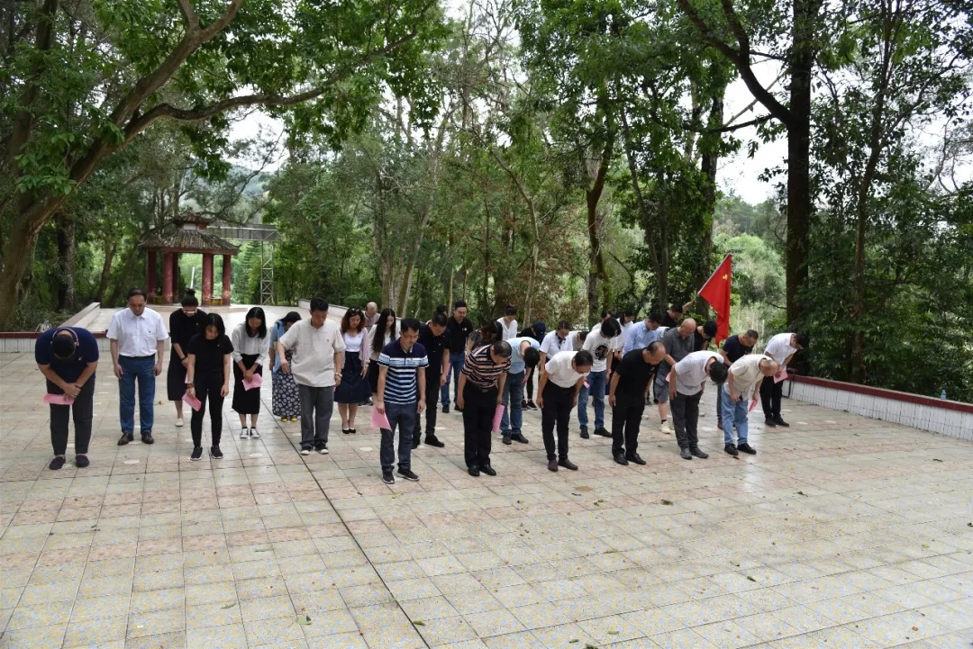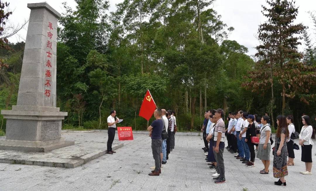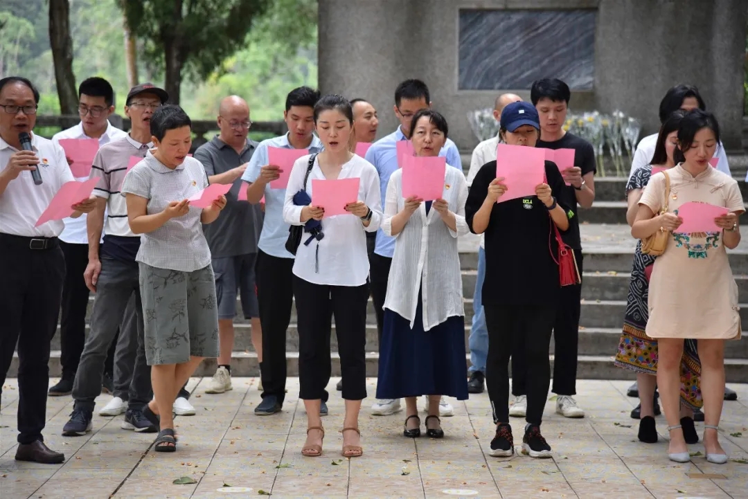 在高要水南分界革命烈士纪念碑前,美术公司党委书记蔡卡宁更是深情地为现场党员讲起了党课!他为党员们讲述了分界革命烈士纪念碑的来历,高度赞扬了革命烈士为中国共产党事业不惜牺牲自己,勇于奉献的精神!动员、号召党员同志们应饮水思源,不忘初心,牢记使命,在一线教师岗位中甘当“孺子牛”,发扬求真务实、埋头苦干、无私奉献、敢于担责的精神,回到公司后进一步带领好其他教师投入到“爱岗敬业,立德树人”中来,牢固树立为员工服务的宗旨意识,时刻把热爱员工,热爱教育作为自己的行为准则,办好人民满意的教育,为402永利集团教育事业的发展做出新的贡献!