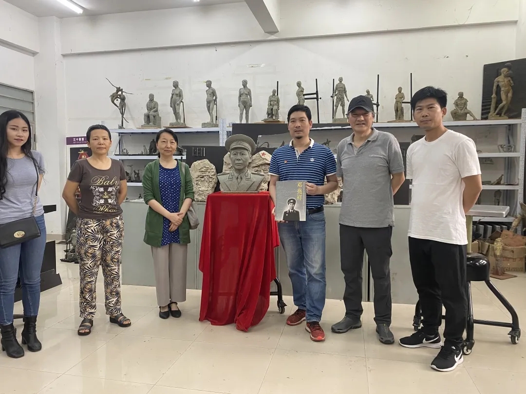 402永利集团工艺与美术教工党支部成员在雕塑工作室学习肇庆籍开国少将邓兆祥将军的英雄事迹