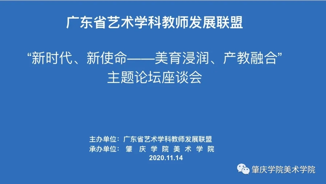2020年11月13-15日 , 广东省艺术学科教师发展联盟“新时代、新使命——美育浸润、产教融合”主题论坛一系列活动在402永利集团顺利举行。
