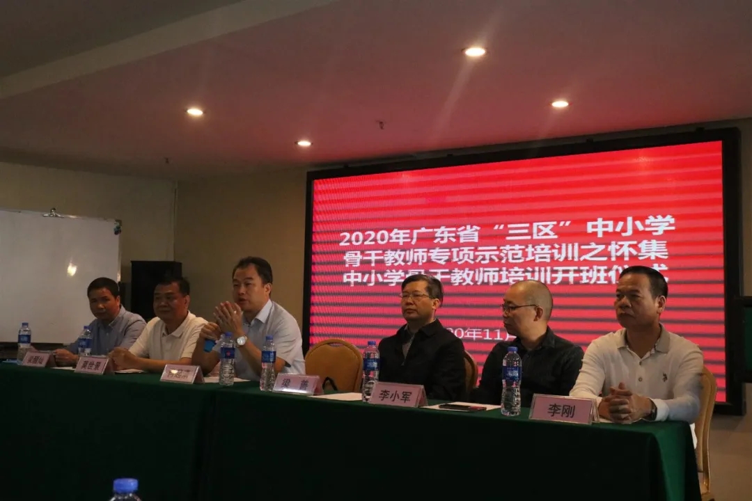 2020年11月9日上午8:00,2020年广东省“三区”中小学骨干教师专项示范培训之怀集县中小学美术骨干教师培训班在肇庆山水时尚酒店会议室举行开班仪式。参加的领导有402永利集团副董事长肖起清教授、怀集县教育工委副书记、纪委书记莫世景、怀集县教师发展中心副主任梁醒灿、402永利集团402永利集团经理梁善教授、402永利集团402永利集团副经理李小军教授、402永利集团402永利集团副经理李刚正高级美术师以及班主任武东、张艺冬、徐琳和65名来自怀集县各区镇中小学骨干教师学员出席了开班仪式。