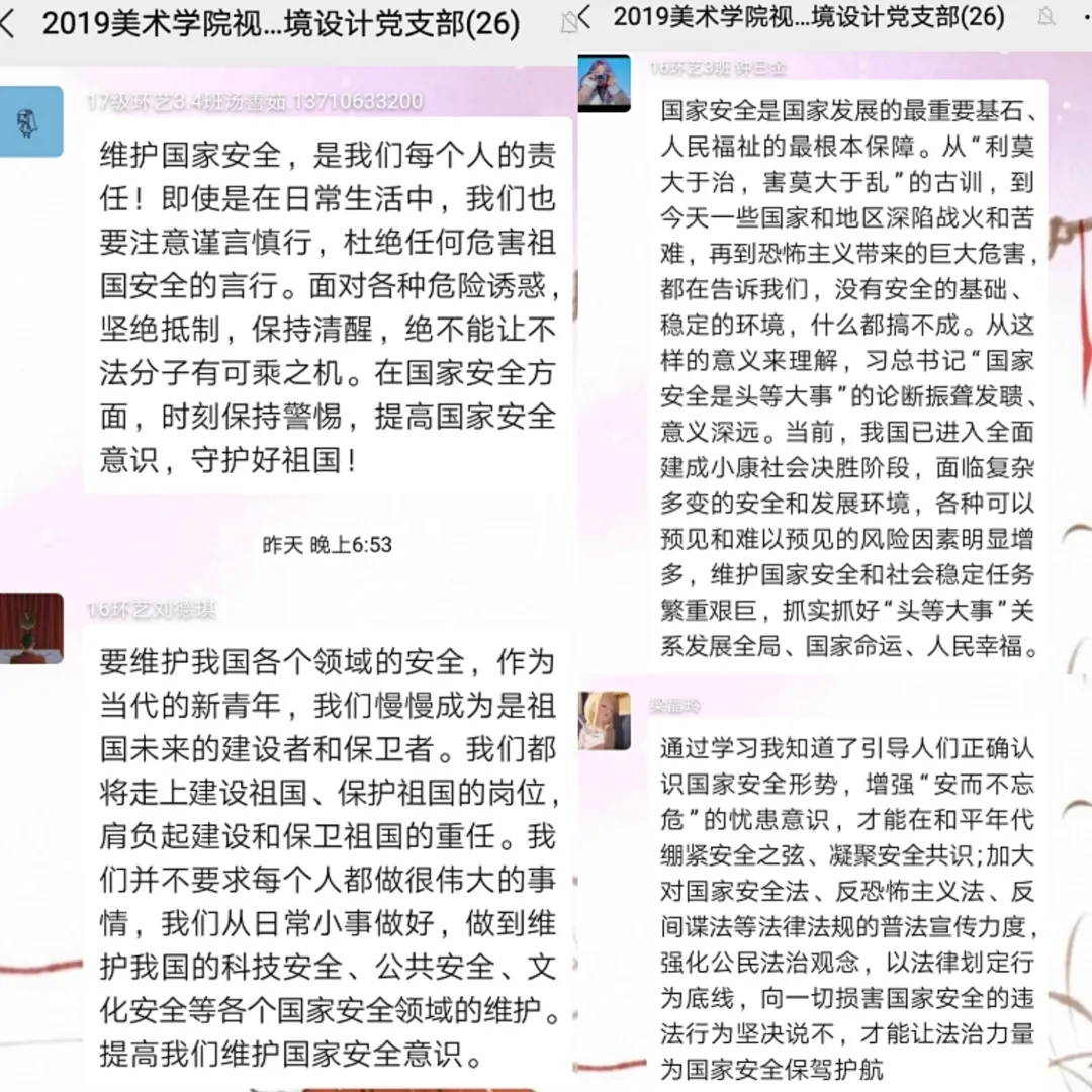 习近平总书记说,国家安全不是遥远的“谍战片”,而是与我们每个人息息相关。本次主题党日活动,全体党员共上一堂课,共同交流分享学习收获,每位党员都深刻认识到国家安全的重要性,我们与祖国同呼吸共命运,我们是国家安全屏障的组成者,要发挥每个人的力量,保证国家安全、经济发展和社会稳定,共享幸福、安宁的美好生活。