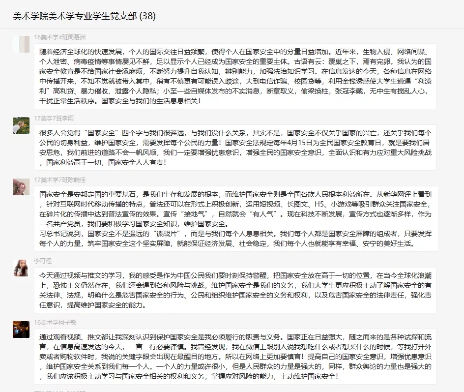 通过学习,同学们总结发表了自己的收获和感悟,其中退伍党员伦杰豪的感悟特别深刻,他说:“国家的信息安全不容小视,结合本次学习内容和在部队期间受到的安全教育我的体会很深刻。