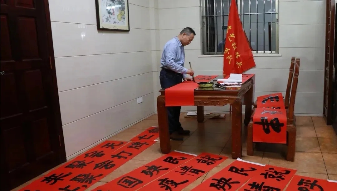 在疫情肆虐而来的时候,很多人都用自己的行动为疫情防控工作做贡献,李刚副经理就是其中的一员。当得知由于停工停产村里无处印制宣传标语的时候,李刚副经理主动承担任务,发挥自己的书法特长,为村里“手动”撰写宣传海报,将疫情防护科普知识、战疫工作要求等书写成横幅,张贴在大街小巷,把政策方针及时进行公告和宣传。