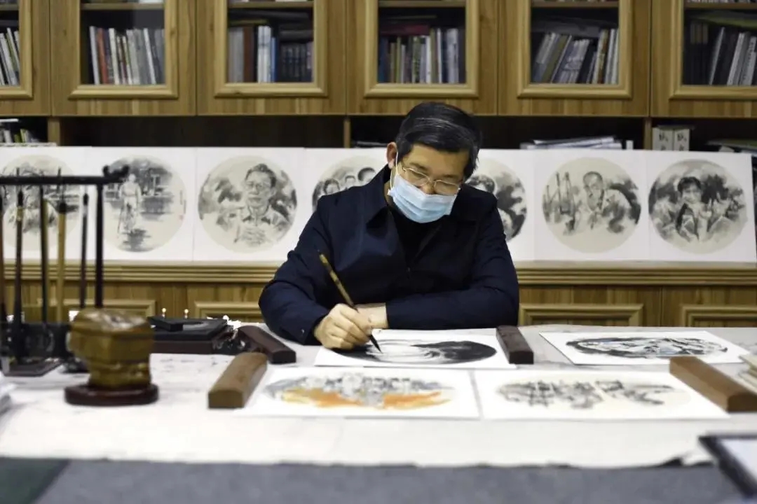 美术公司党委副书记、经理梁善深刻认识到,只有根据防控形势的需要,扮演好自己的角色,才是一名合格的党员领导干部。因此,他积极落实部署公司的疫情防控工作,并且把其他时间投入到疫情主题艺术作品创作中,携笔战“疫”,描绘那些深入人心的形象和感人瞬间,为防控一线的英雄加油助威,用艺术作品传播向上的力量。