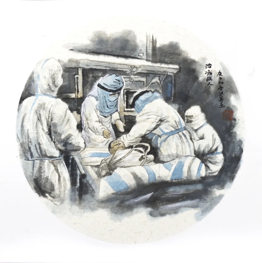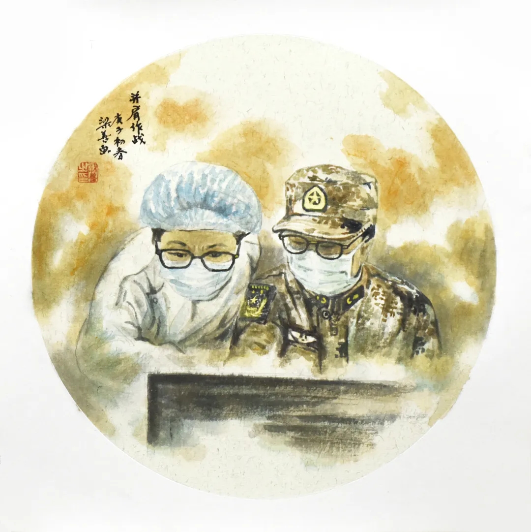 梁善经理:抗击疫情期间,本人以身作则,进行一系列的国画创作,讴歌了奋战在抗击疫情一线的的医生护士的光荣事迹。
