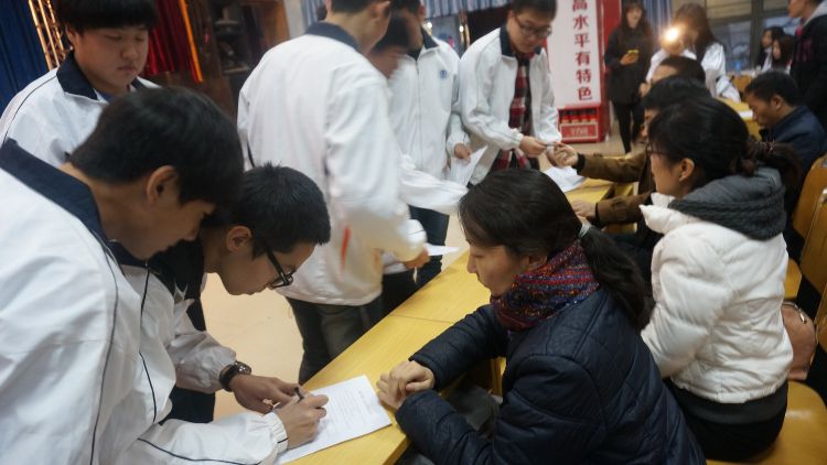 最后,同学们现场签订了诚信考试承诺书:承诺自己在各类考试中不违规作弊,诚信考试,严格履行自己的庄严承诺,维护考试公正,以诚信考试为荣,以违纪作弊为耻。