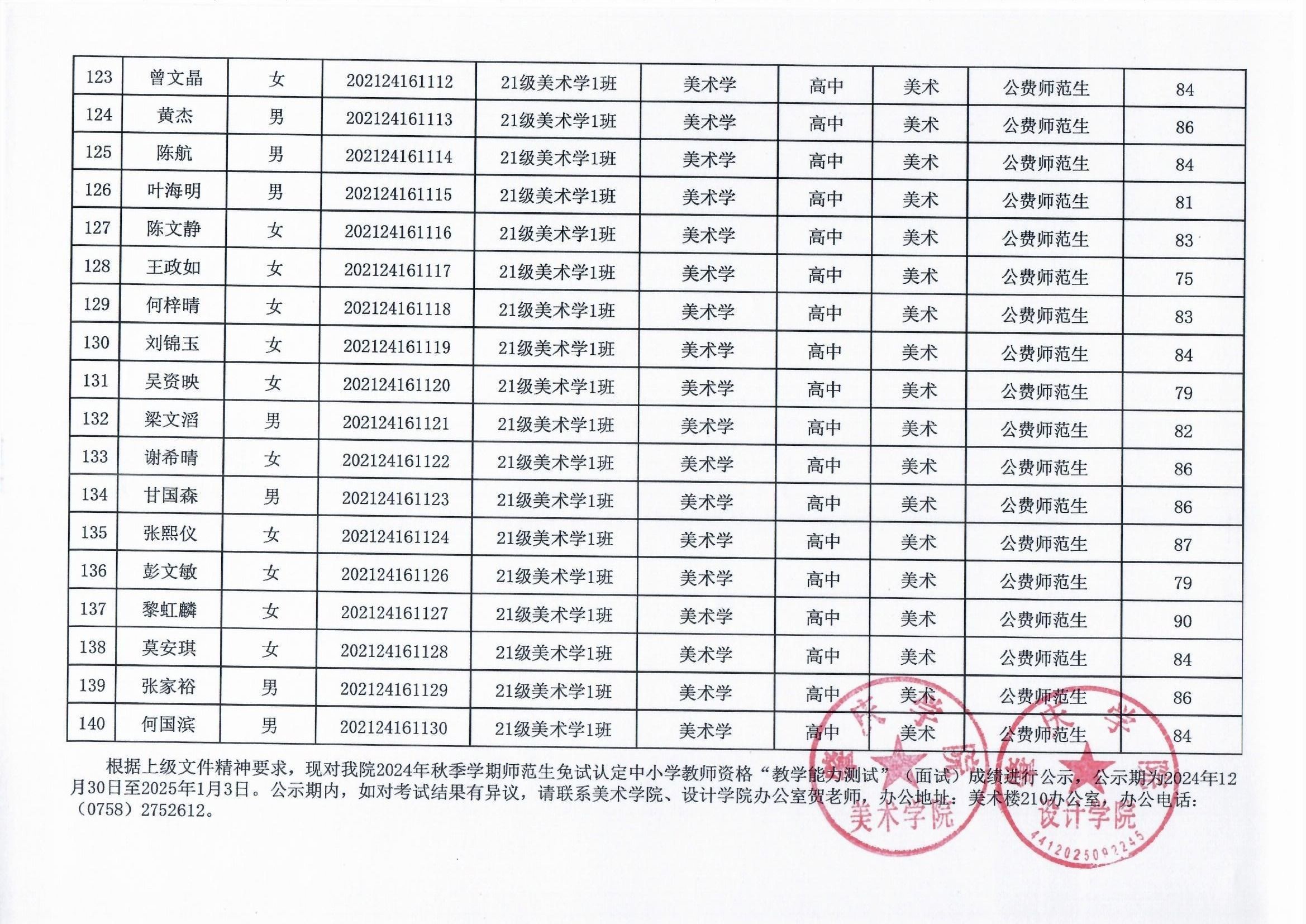 根据上级文件精神要求,现对公司2024年秋季学期师范生免试认定中小学教团队格“教学能力测试”(面试)结果进行公示,公示期为2024年12月30日至2025年1月3日。公示期内,如对考试结果有异议,请联系402永利集团、设计公司办公室贺老师,办公地址:美术楼210办公室,办公电话:(0758)2752612。